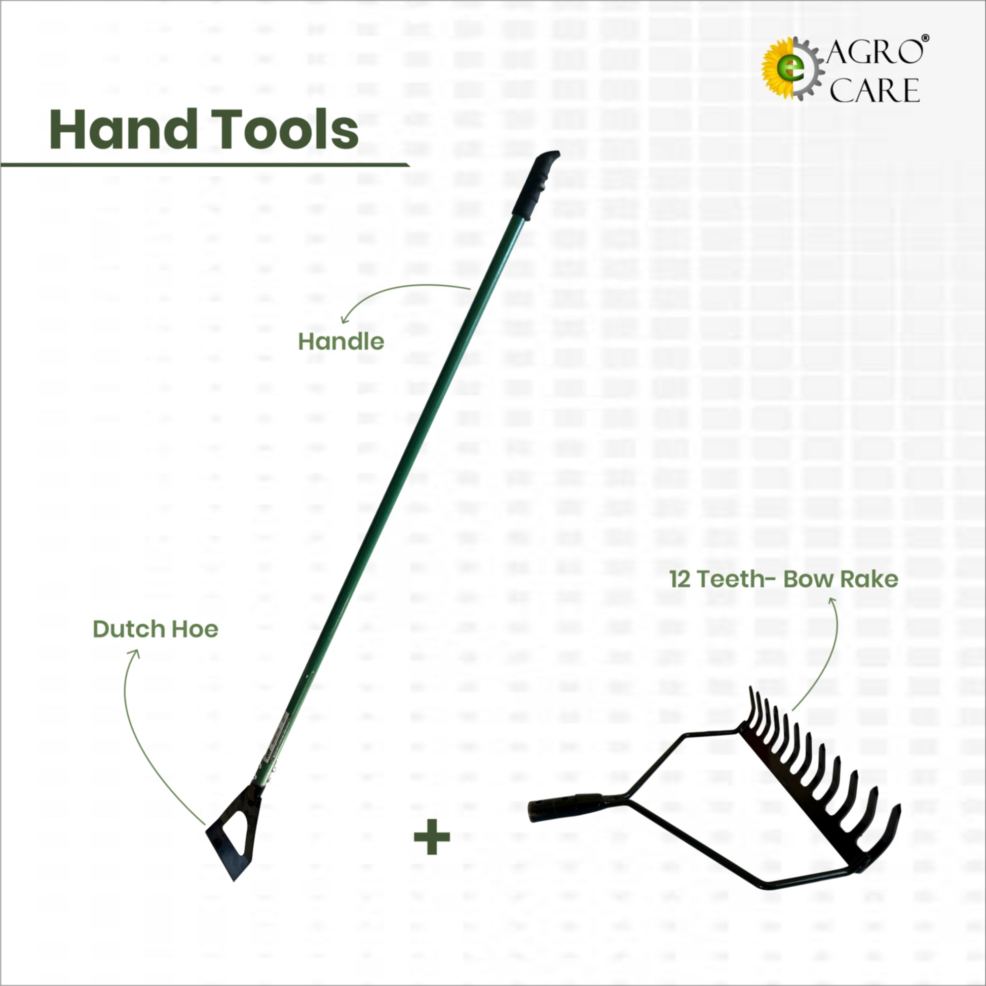 हैंडल और 12-दांतों वाले बो रेक के साथ डच हो एक बहुमुखी बागवानी टूलसेट है, जिसे कुशलतापूर्वक निराई, मिट्टी की तैयारी और भूनिर्माण कार्यों के लिए डिज़ाइन किया गया है।