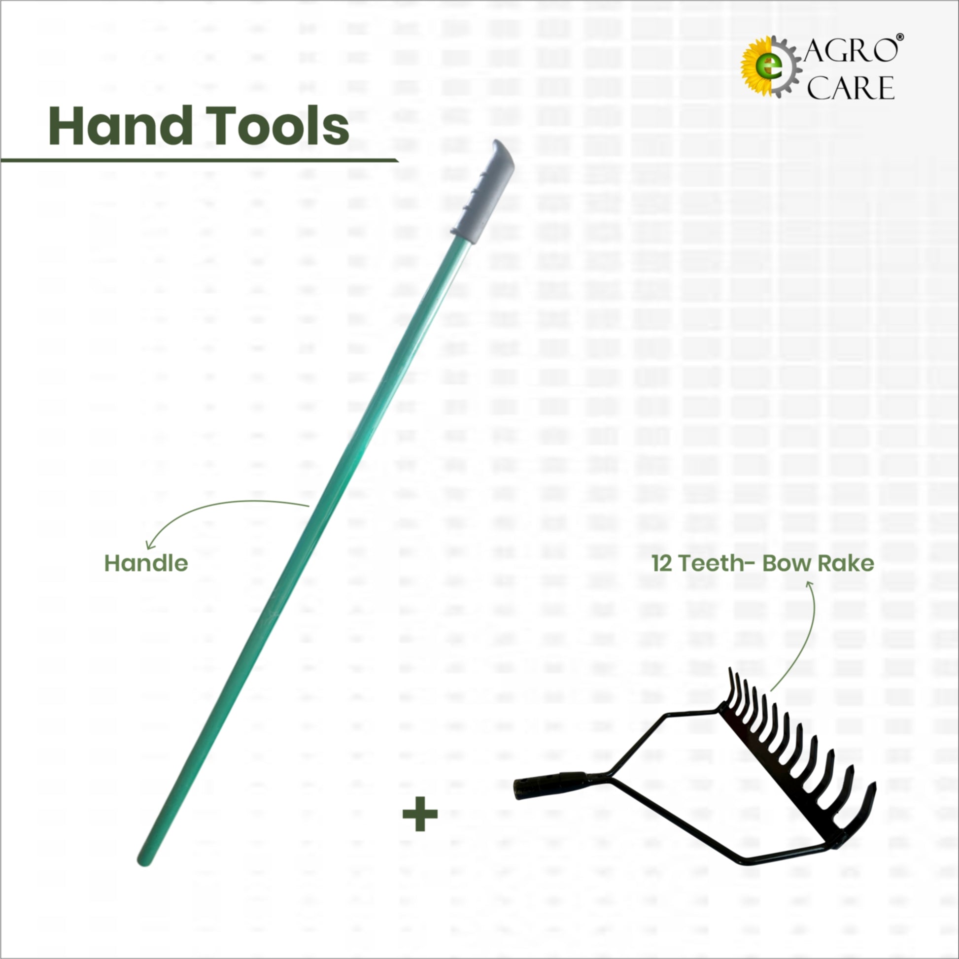 हैंडल सहित 12-दांतों वाला बो रेक एक टिकाऊ और कुशल बागवानी उपकरण है, जिसे मिट्टी को समतल करने, मलबा हटाने और गीली घास फैलाने के लिए डिज़ाइन किया गया है।
